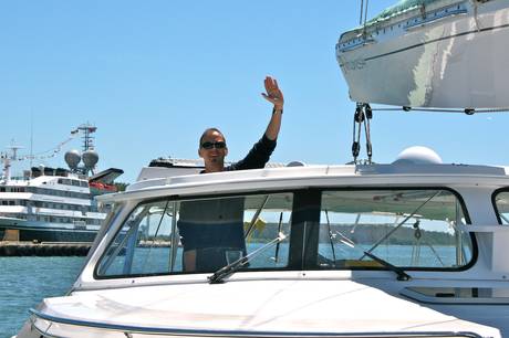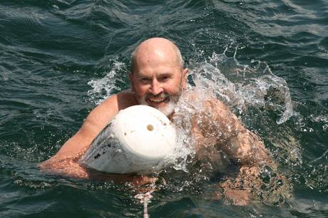 Sören birgt mit entschlossenem Sprung in den St.Lawrence River einen vorbeitreibenden Fender