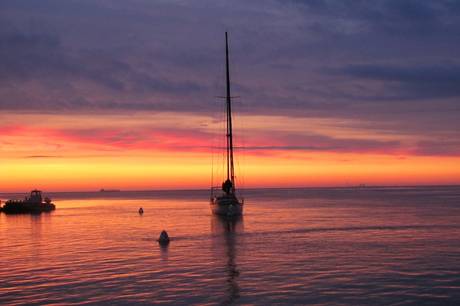 so geniessen wir in den ruhigen Outer Islands vor Anker den Sonnenuntergang