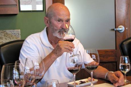 der Piemont-Weinbauer vergleicht die Weine interessiert und kritisch