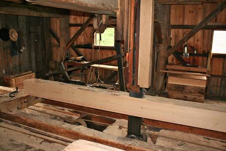 die Sägerei wird wie alle Maschinen von dazumal mit Wasserkraft angetrieben