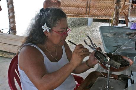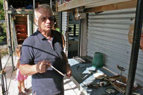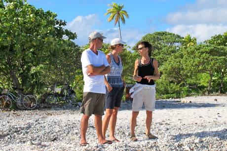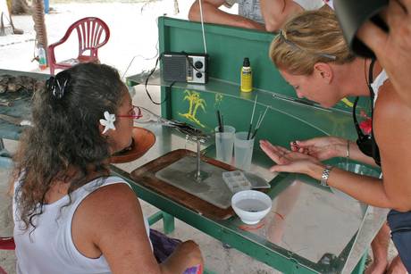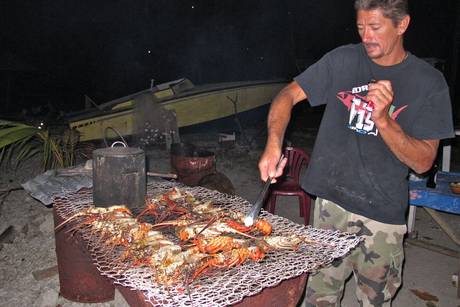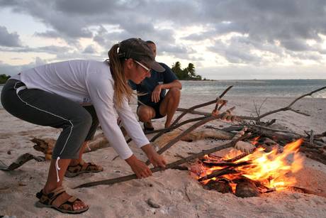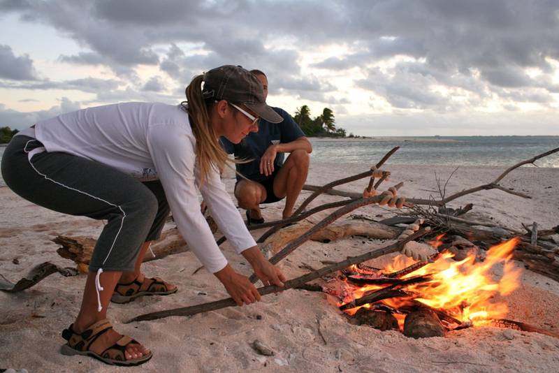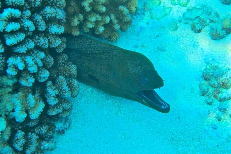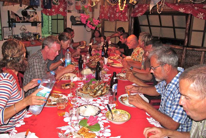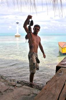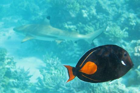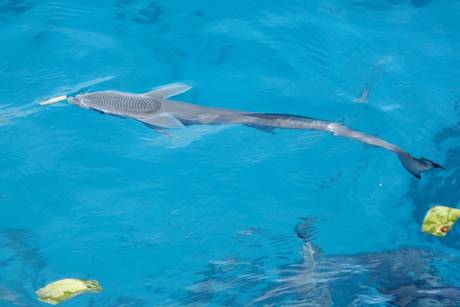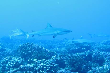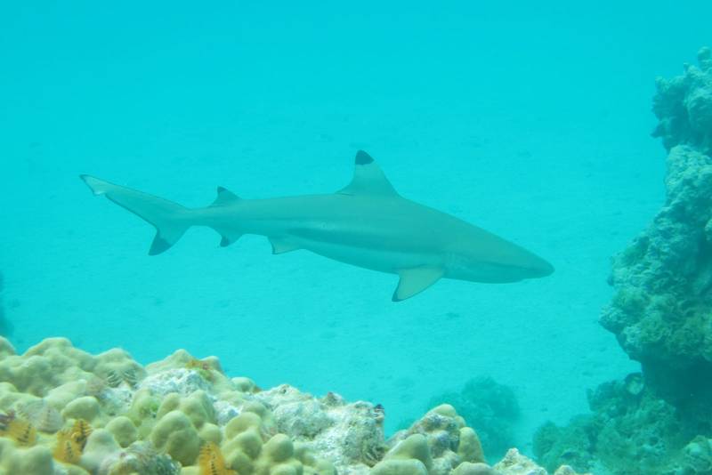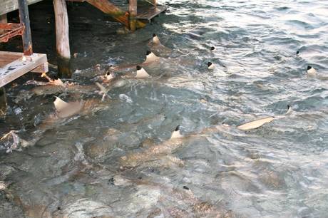 hinter der Küche tummeln sich dutzende kleine Schwarzspitzenhaie und hoffen auf einen Abfallbrocken
