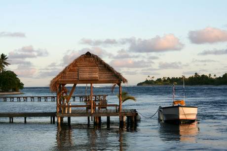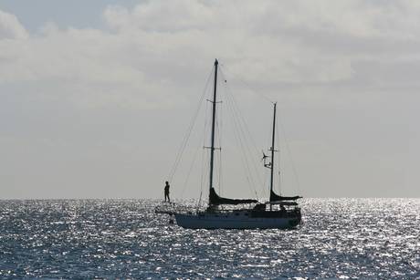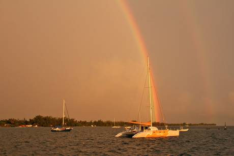 Sunset und auslaufender Strom beobachtet von der Terrasse des kleinen Restaurants von Annabelle